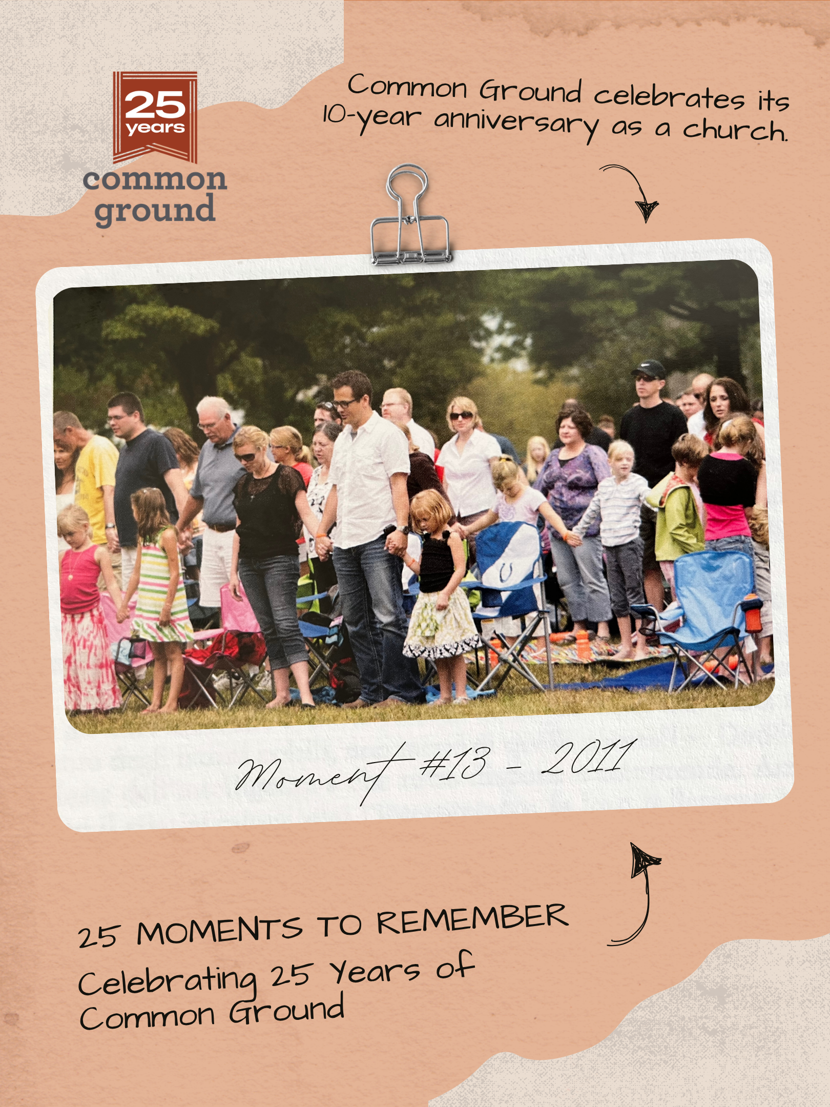 As we approach our 25th anniversary this June, we are beginning a weekly series called 25 Moments to Remember. Each week, we will share one moment that helped shape the story of Common Ground and the church we are today.